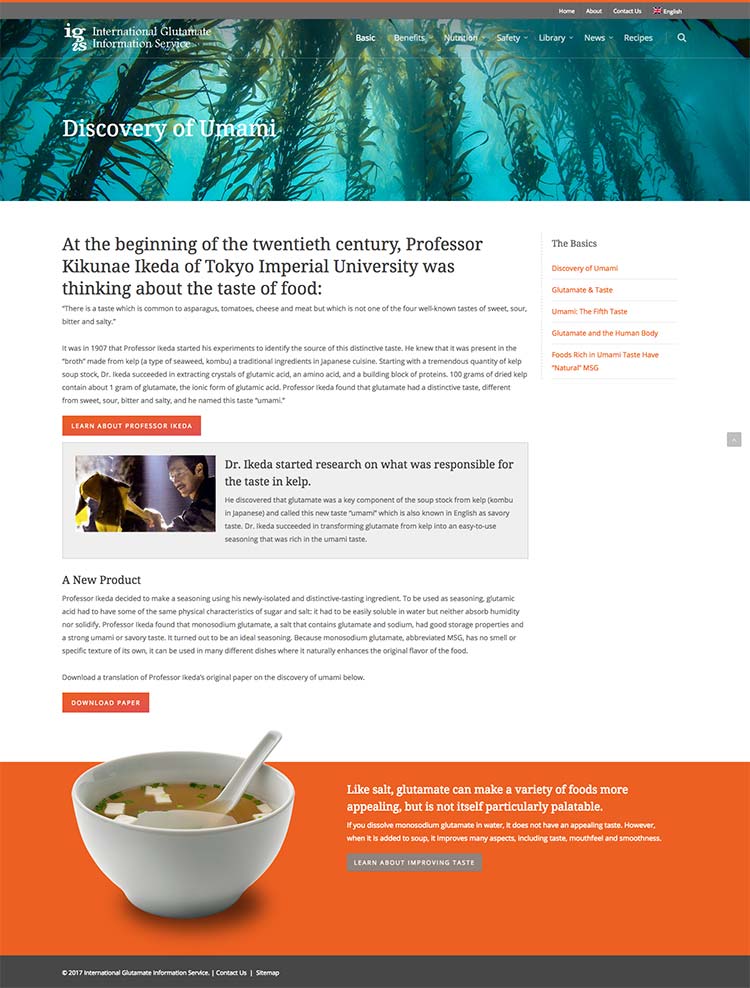 The Glutamate.org website was a decade old and built in an outdated Movable Type CMS. Bright Tribe reorganized the content and designed a professional, intuitive experience for users that is visually compelling and easy to maintain.